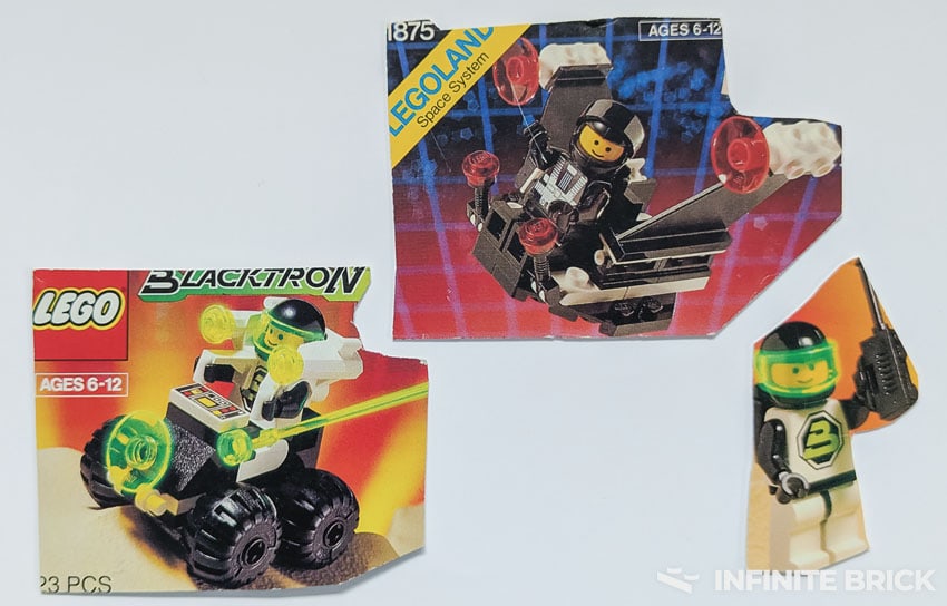Relics of my youth: some box art cutouts of some of the earlier Blacktron sets in my collection.