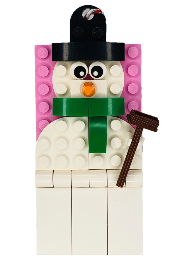 A custom mini-build for your holiday gifts or tree! This sweet snowman includes the pieces to construct him, and the 3-tile tag; perfect for adding a message to any gift or holiday hanging. Use a dry-erase marker to change your tag over and over again! Choose a Sharpie marker if you’d prefer a more permanent message. A charming way to give a little Lego to your loved ones.